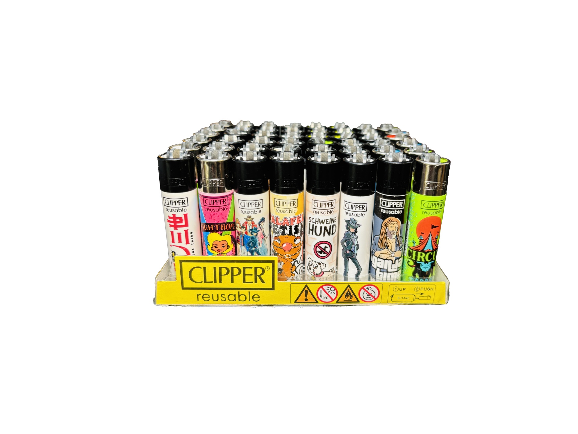 Isqueiros Clipper Grande 39,00 € Desconto de %. Partilhar Coleção Rick & Morty Preto Soft Jet Lisos Marked Skulls Family Weed Lisos Transparentes Triple Gradient Fluor Nebula Clipper Mixed Soft Cor Weed Crystal Gradient Comprar Contactar 1 unidades em stock Display com 48 Isqueiros Clipper Grande Preços com IVA incluido Marca Clipper